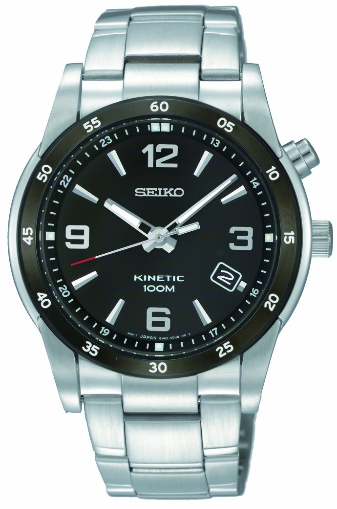 Seiko Kinetic Men's SKA505 Stainless Steel Analog with Black Dial Watch